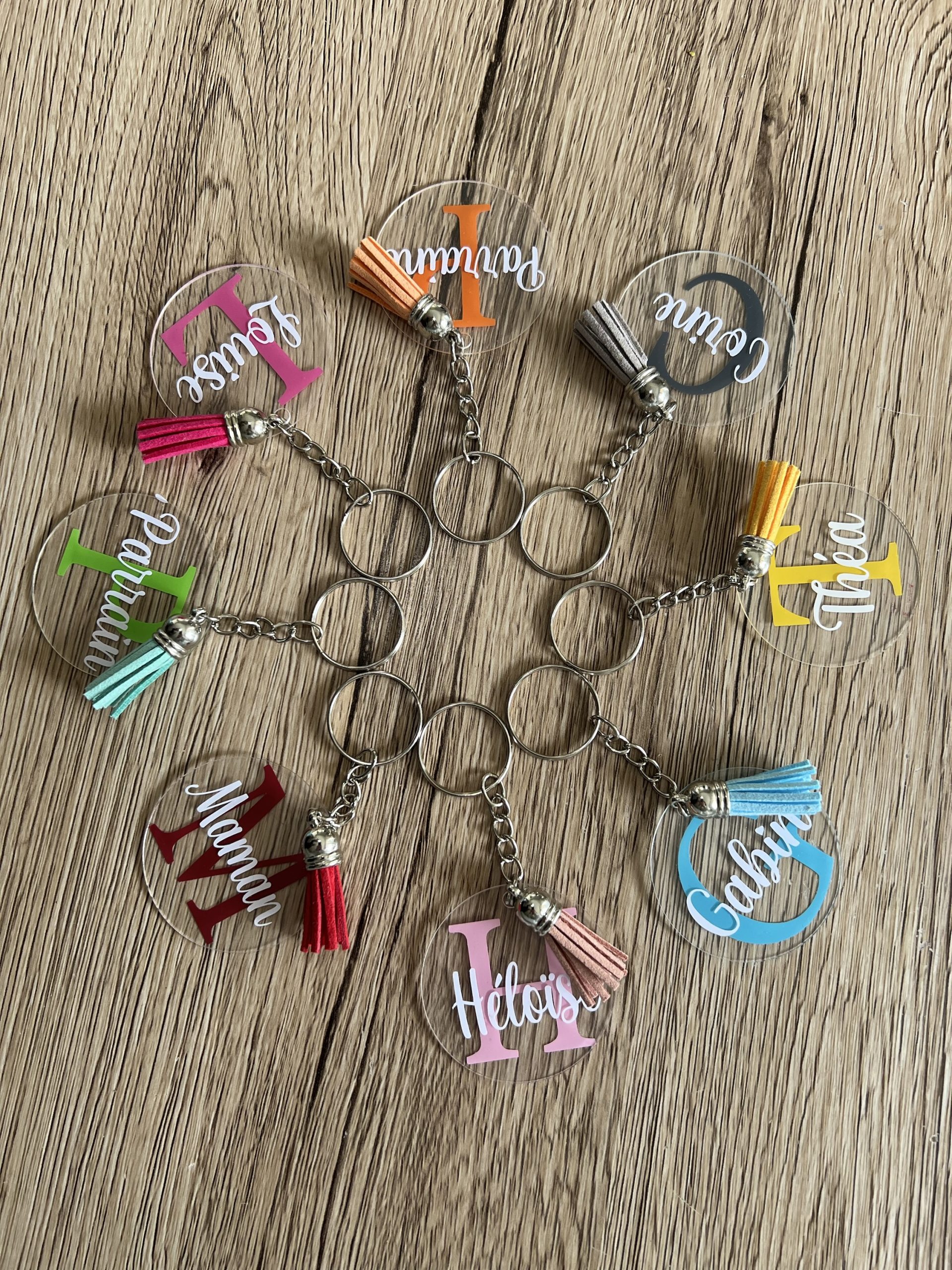 Organisez vos clés avec style et originalité grâce à ce porte-clés en acrylique personnalisé. Léger, solide et élégant, il est conçu pour vous accompagner au quotidien, que ce soit sur votre trousseau de clés, votre sac ou même un cartable. Personnalisez-le avec un prénom et son initiale en arrière-plan. Ce qui en fait un accessoire pratique qui reflète votre personnalité.